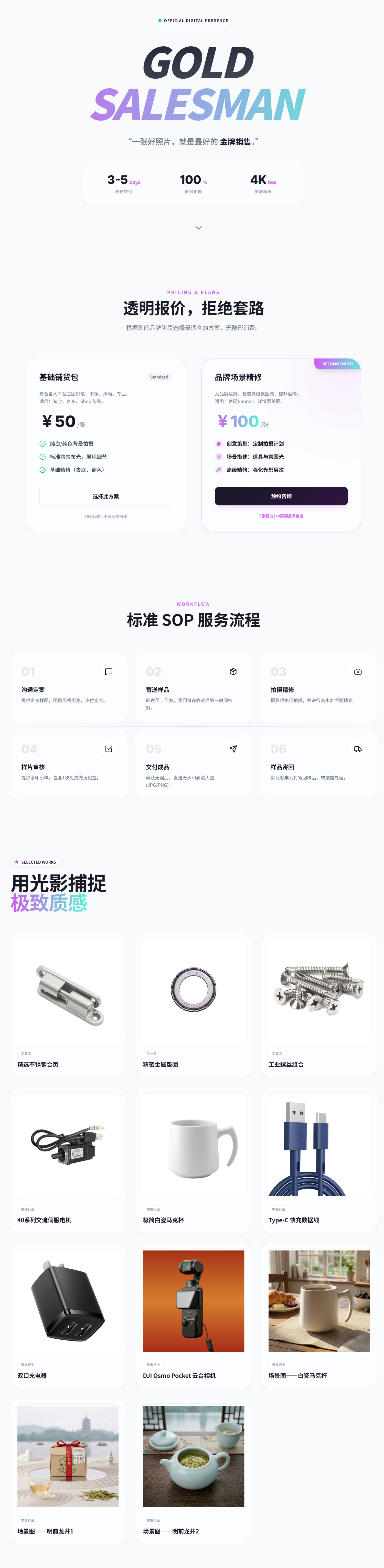 用专业镜头还原质感,让每一件产品更有说服力。产品拍摄|50 元/ 张起。